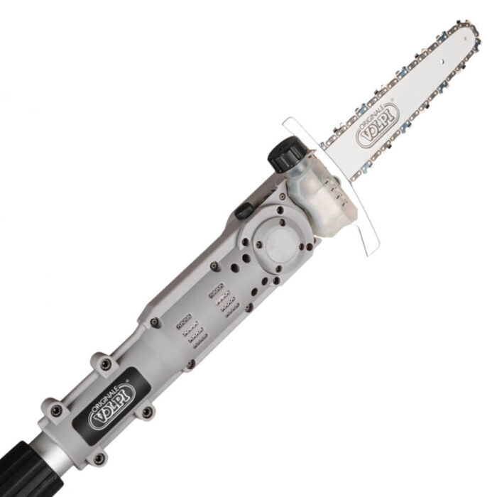KVS7000P è il nuovo potatore su asta pratico e leggero di VOLPI ORIGINALE. Questo tool è dotato di catene da 1/4″ con copertura protettiva e barra da 8″. Questo potatore è disponibile in due versioni diverse per lunghezza dell’asta KVS7000P- lunghezza chiusa: 170 cm- lunghezza aperta: 250cm; KVS7100P- lunghezza chiusa: 250 cm- lunghezza aperta: 350cm Il serbatoio dell’olio è integrato nella testa dell’attrezzo e il livello visibile dall’esterno, con lubrificazione automatica e regolabile della catena. L’equipaggiamento standard include: due batterie al litio cordless da 21.6V 4.0Ah ricaricabili e carica batteria a tre vie riponibili nel comodo marsupio brandizzato VOLPI ORIGINALE.
